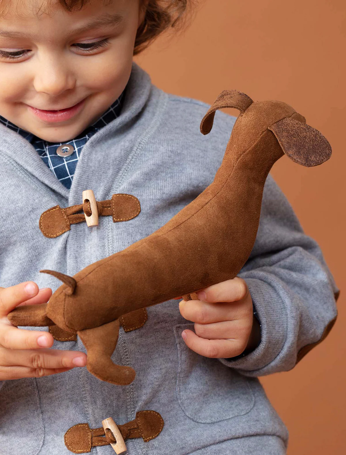 Papu the dachshund soft toy is a lovely little creature that is sure to delight young children and can also be given as a gift to adults. Papu will not cause symptoms of pet allergies! The length of the toy dog is 26 cm, and its height at the withers is 9 cm.