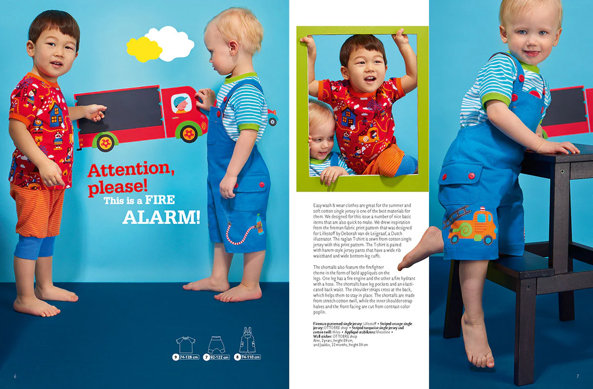 The coolest summer clothes for energetic toddlers and preschoolers. Wonderful appliqués, vibrant print patterns and several patterns requested by readers. Shorts, jersey pants, Bermudas, shortalls, a denim jacket, a dress and various delightful T-shirts. Sizes 74-128 cm